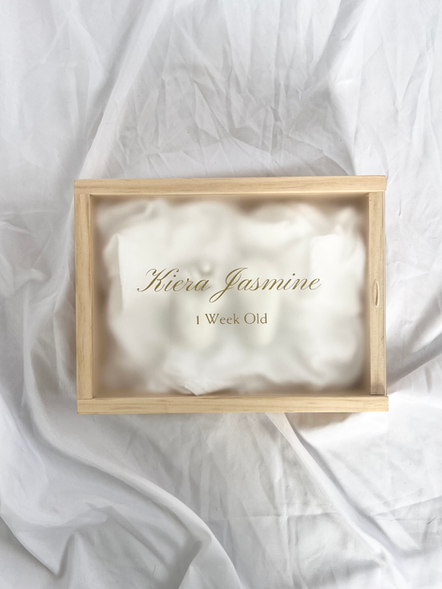 These casts are displayed in a beautiful custom made wooden box, you choose a soft cloth fabric with personalised frosted lid including luxury fonts and colours.
